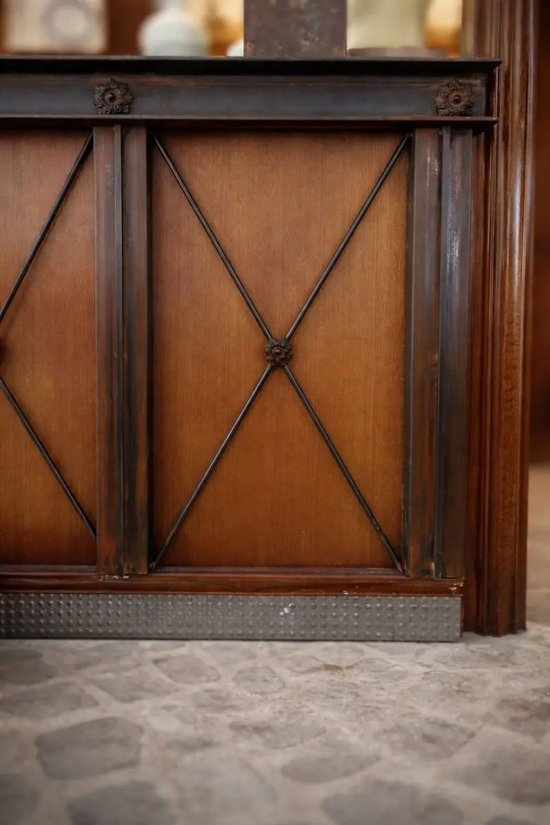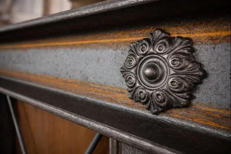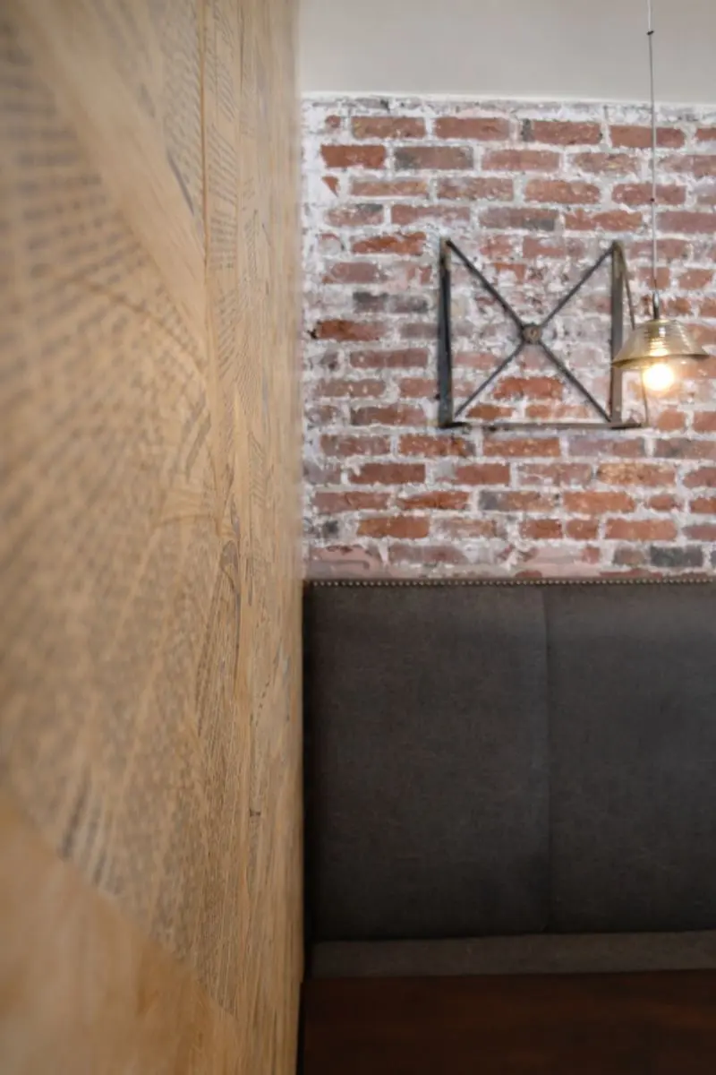 Sur les murs, les papiers journaux anciens murmurent le temps passé. La rouille, les fleurs d’acier et les matières brutes racontent l’usure, la main de l’homme, la patience. Un lieu pensé comme une mémoire à habiter, entre poésie industrielle et élégance du détail.